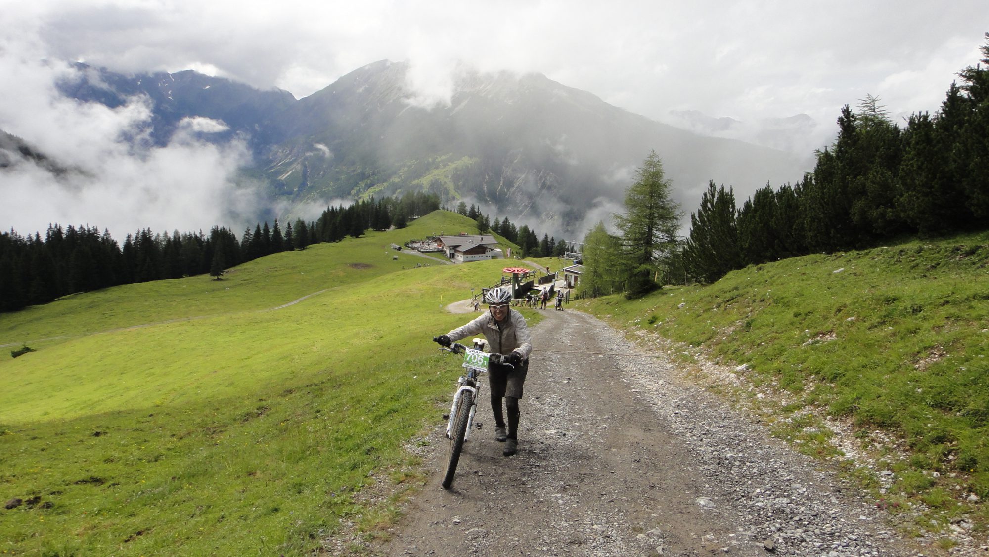 Im Hotel mekten wir dann, wie schwierig es ist ohne Begleitung unterwegs zu sein. Unsere Reisetaschen waren weg und wir waren zugedreckt bis oben hin. Also hieß es ins Zimmer zum duschen und im Handtuch „splitterfasernackt“ zu warten bis hoffentlich jemand unsere Reisetaschen mit der ganzen Wechselkleidung findet und uns bringt. Gott sei Dank überraschten uns damals gute Freunde Jo und Andi in Imst im Ziel und konnten dann auch irgendwann unsere Taschen auf irgendeinem Campingplatz ausfindig machen und mit dem Auto zu uns ins Hotel bringen. Danke, das werden wir Euch nie vergessen!
