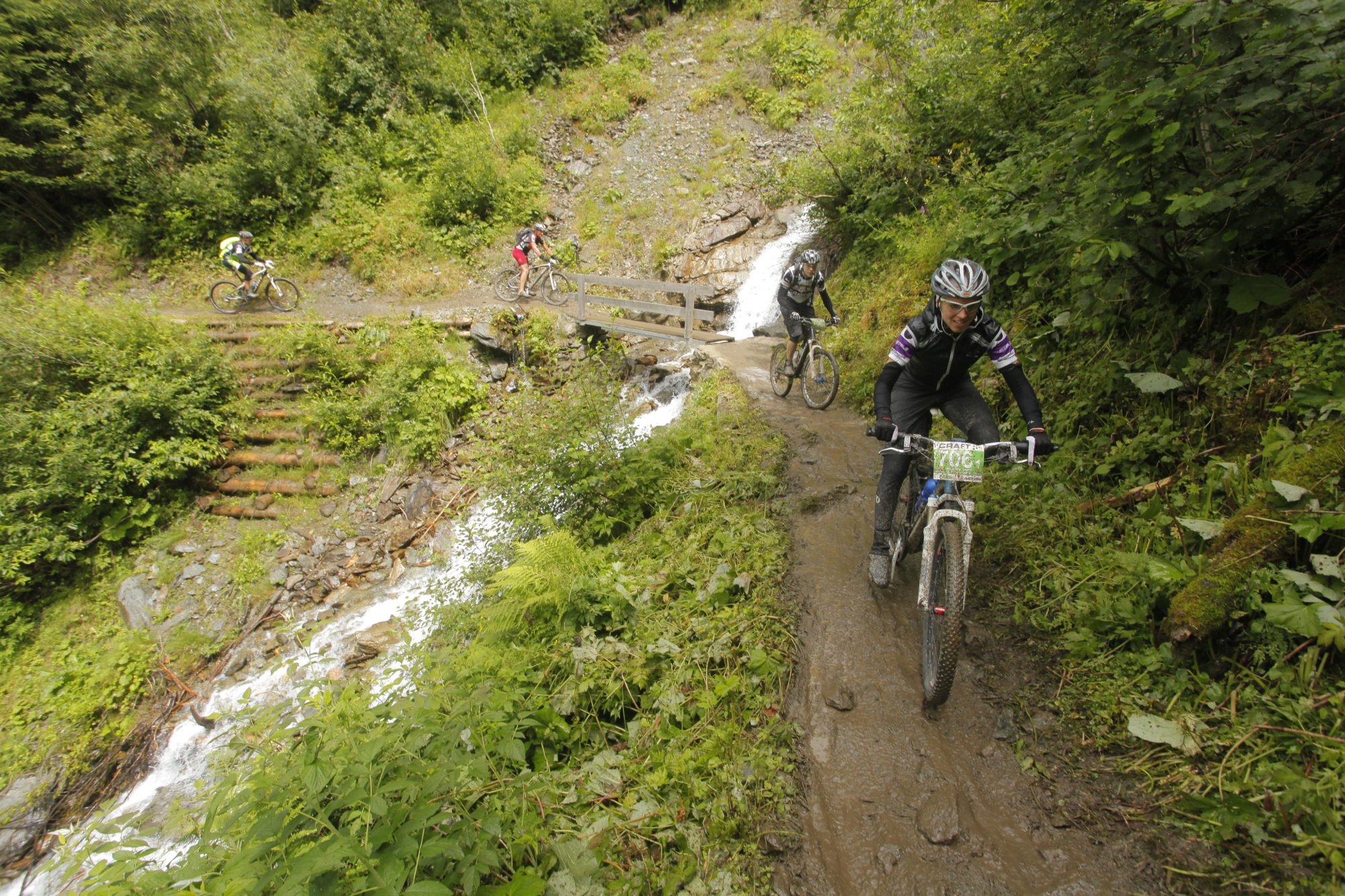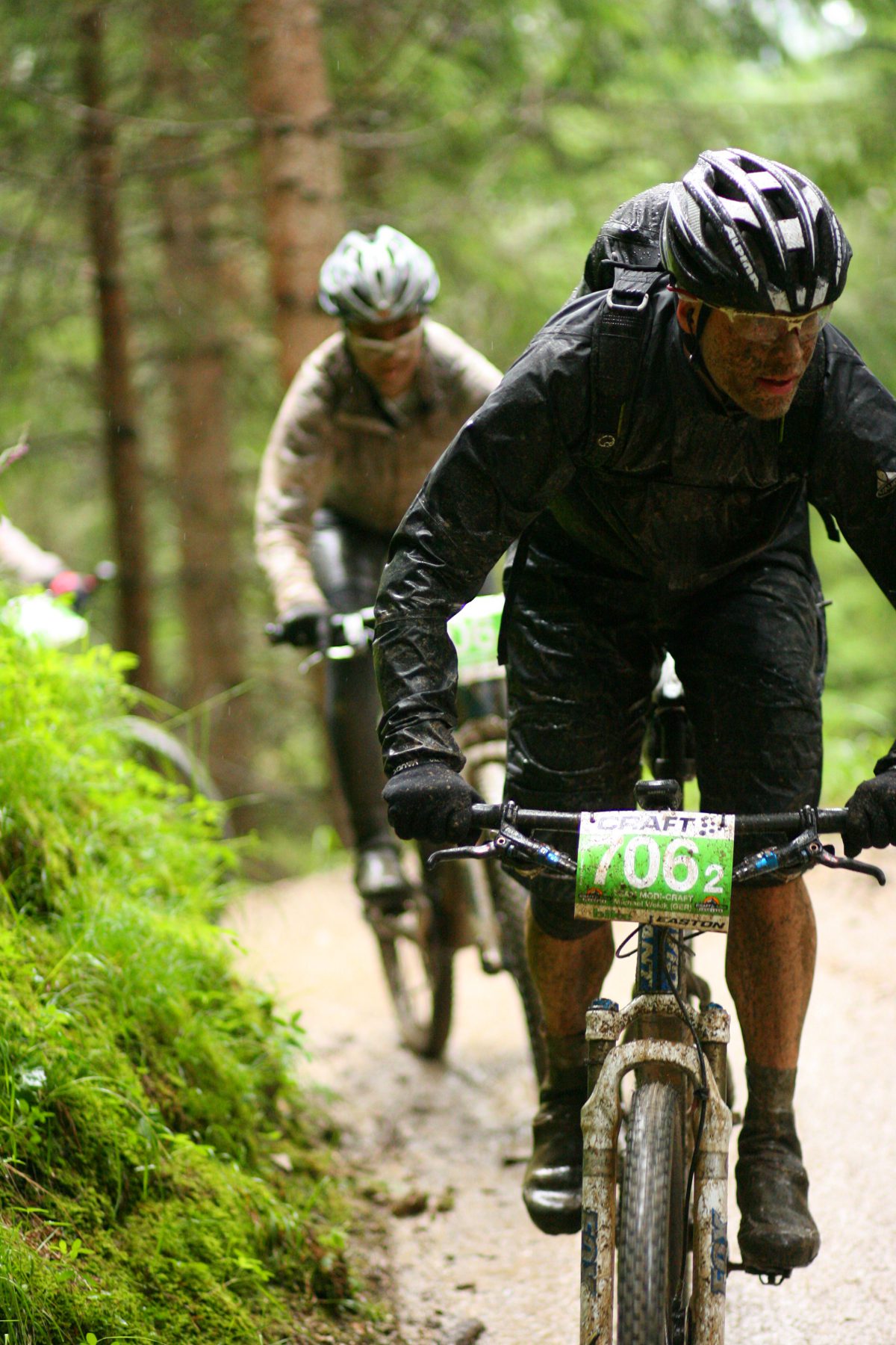 Die erste Etappe hatte es vor allem aufgrund der Witterung in sich, Bergbäche traten über die Ufer, es war teilweise so kalt, dass am höchsten Punkt Rettungsdecken an schnatternde Teilnehmer ausgegeben wurden, da wir mit dem ganzen Tross bei 2 C und Regen fast 20 Minuten am höchsten Punkt warten mussten, bis der Helikopter wieder abhob um einen Verletzten zu bergen. Als wir als ungefähr 50. Mixed Team im Ziel ankamen waren wir dann nur noch froh heil da zu sein. Unser Ziel von Anfang an war es sowieso einfach gut gelaunt, gesund und munter bis nach Riva zu schaffen und eben so gut wie möglich zu fahren.