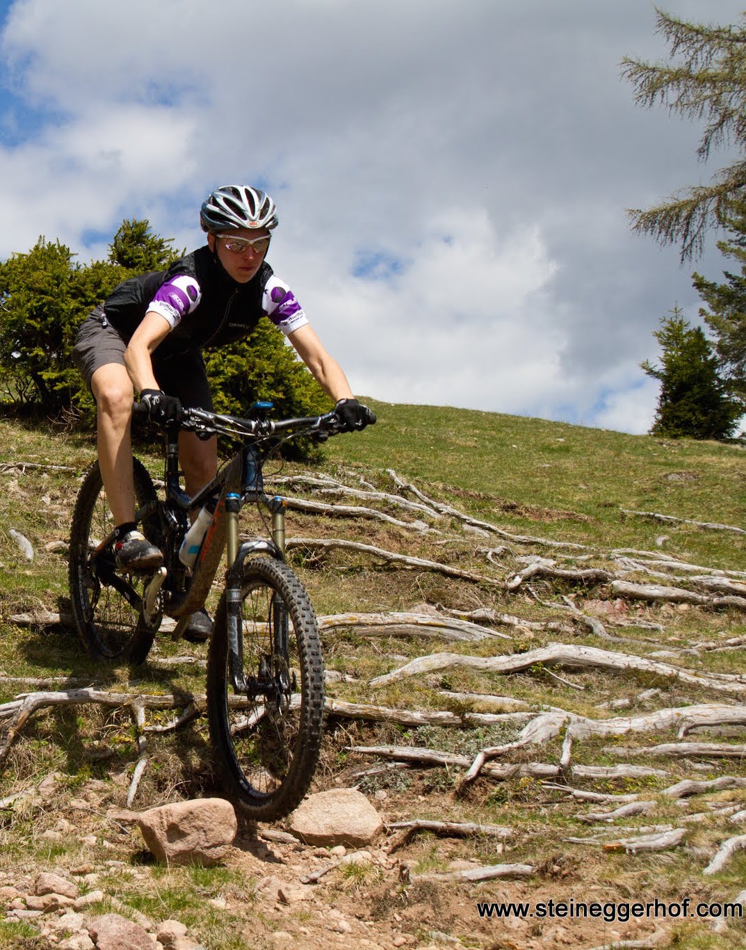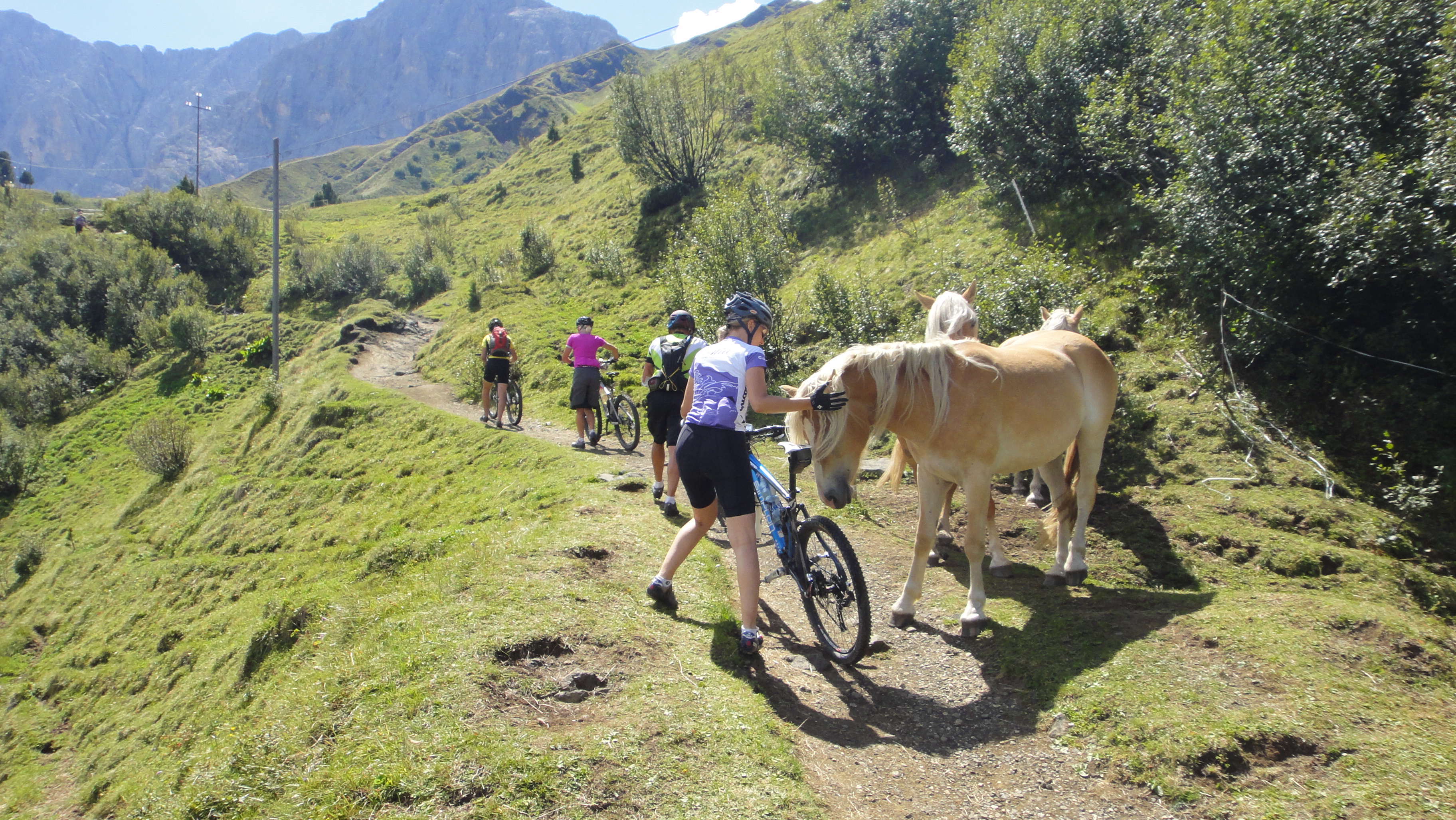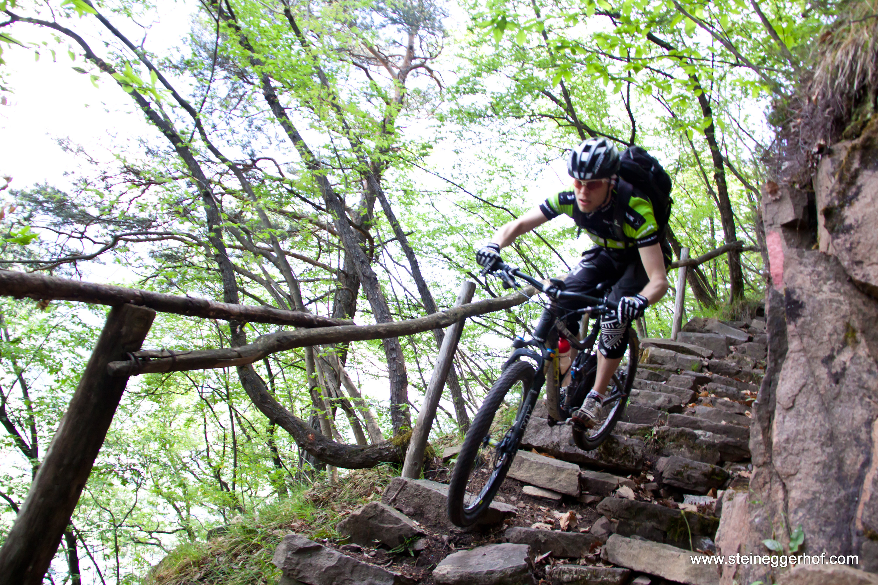 - Mit dem EMTB auf alle Fälle die Tour hoch zum Tschafons, die technisch schwierig mit Spitzkehren nach oben eine echte Herausforderung ist.