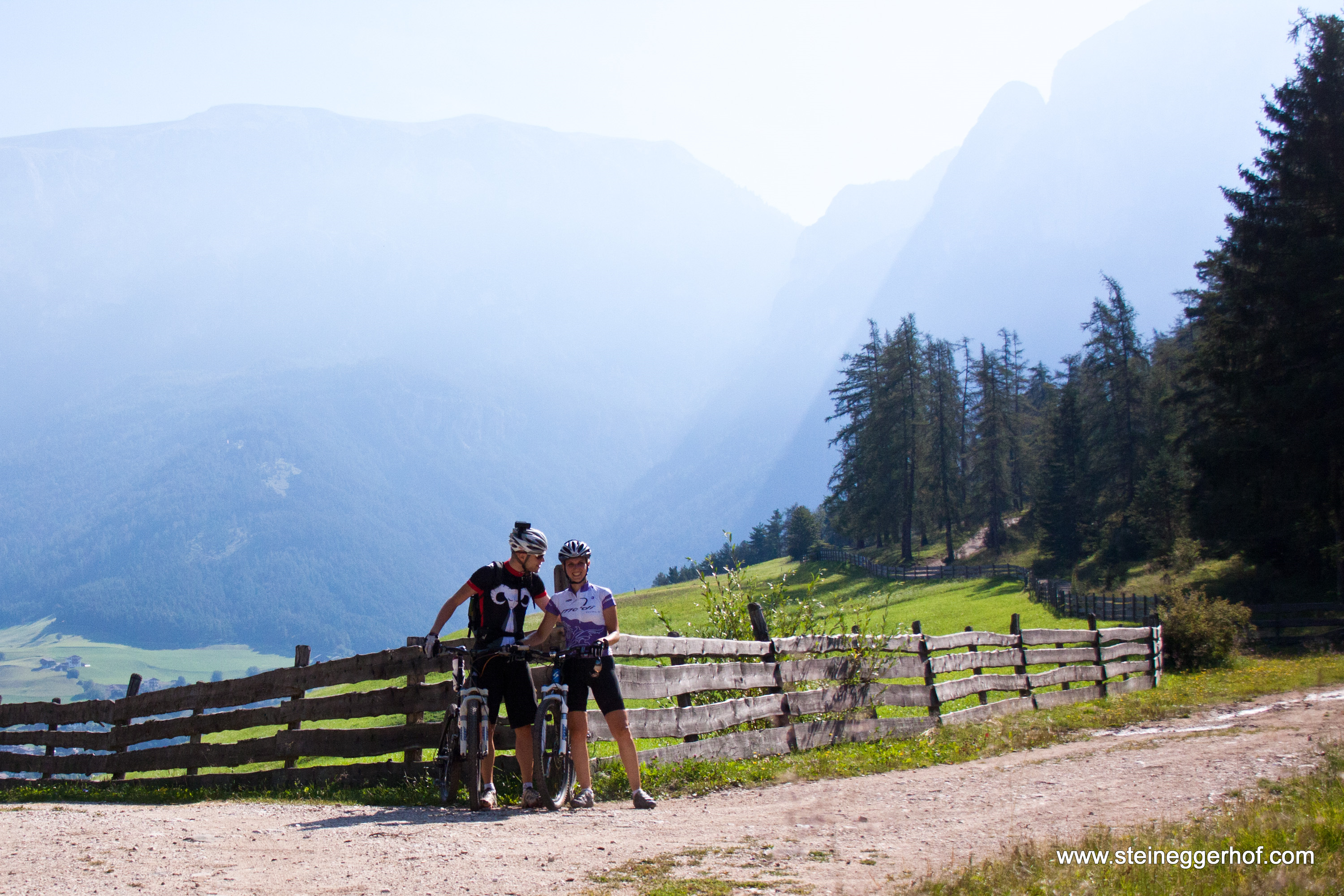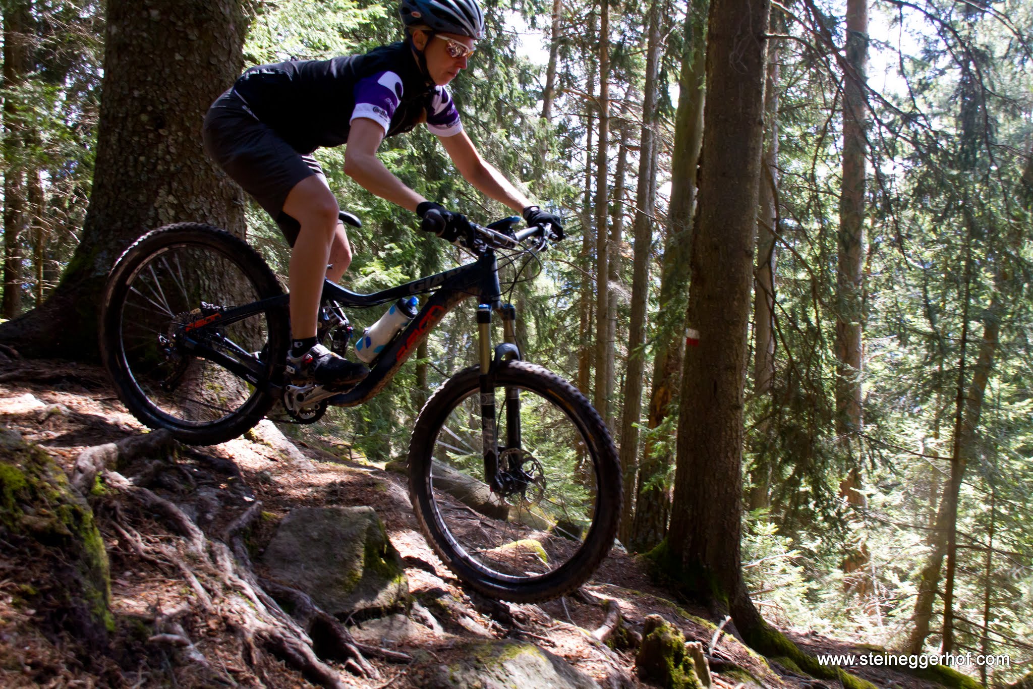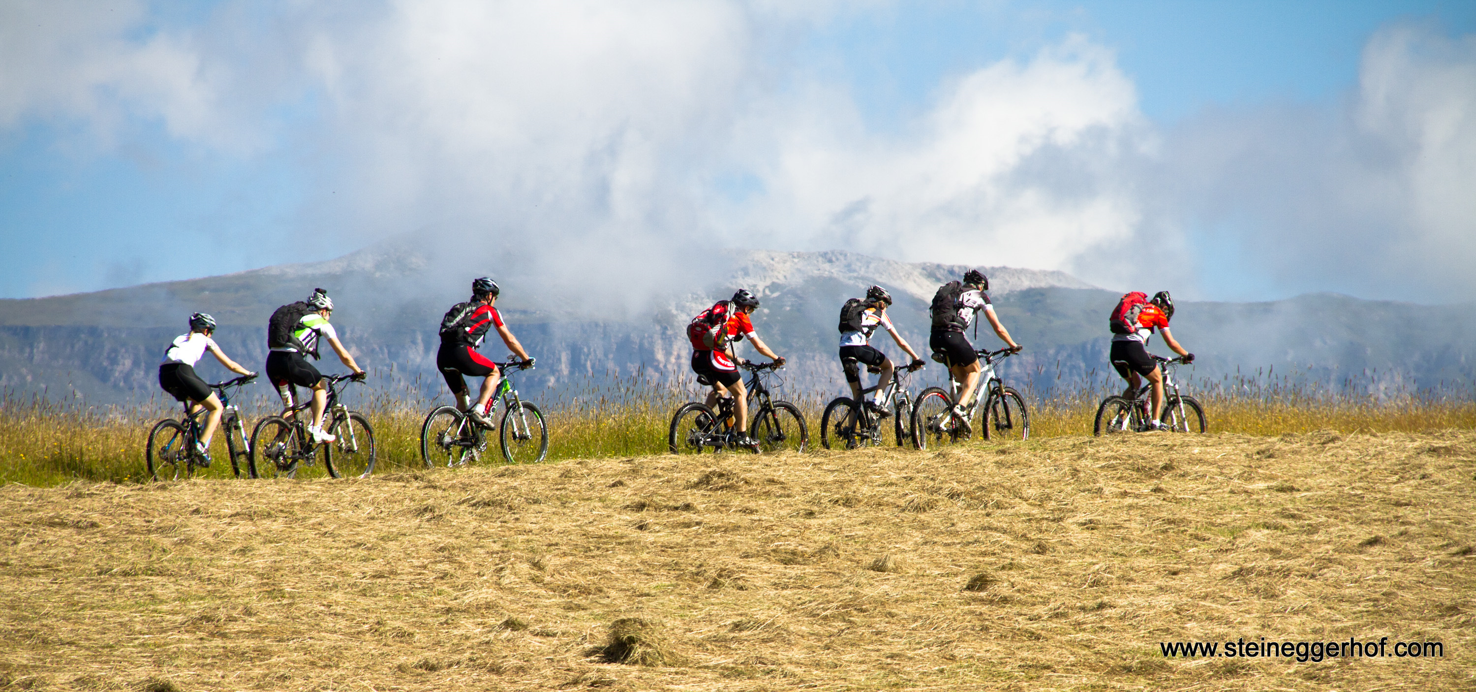- Mit dem EMTB auf alle Fälle die Tour hoch zum Tschafons, die technisch schwierig mit Spitzkehren nach oben eine echte Herausforderung ist.